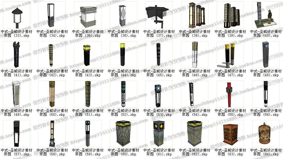 SU素材 草圖大師 景觀燈具 歐式現(xiàn)代東南亞 中式 燈柱草地?zé)?石燈推廣熱賣行情