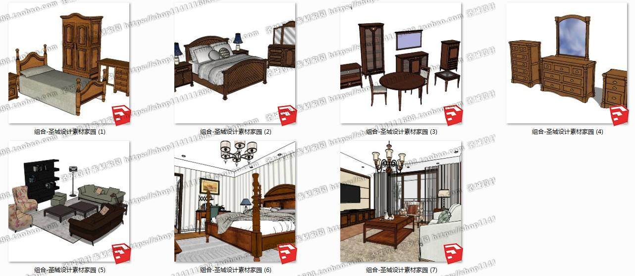 su模型草圖大師美式家具沙發(fā)桌椅凳梳妝臺床柜子室內(nèi)家裝組件素材推廣熱賣行情