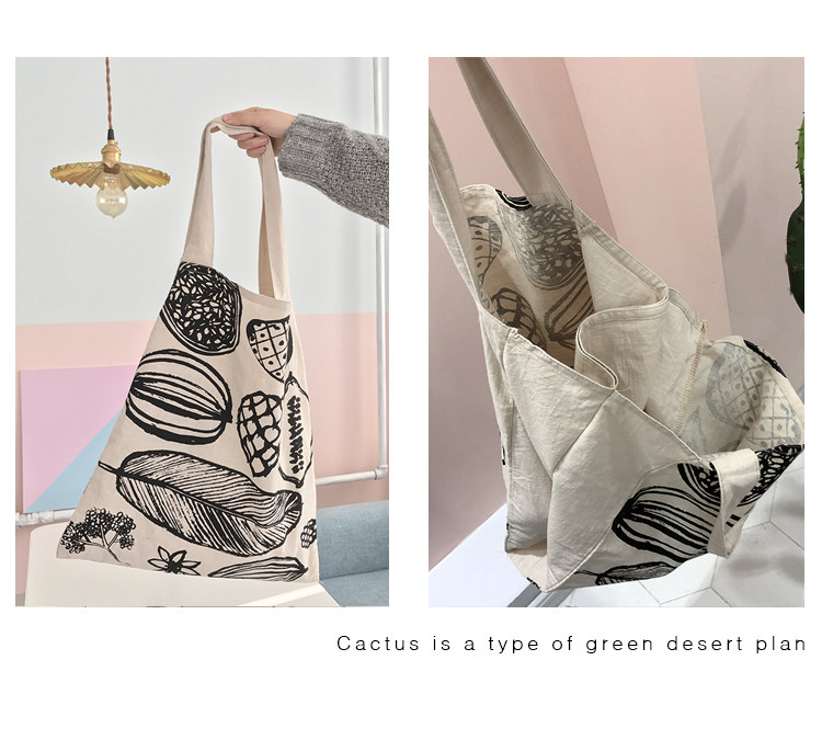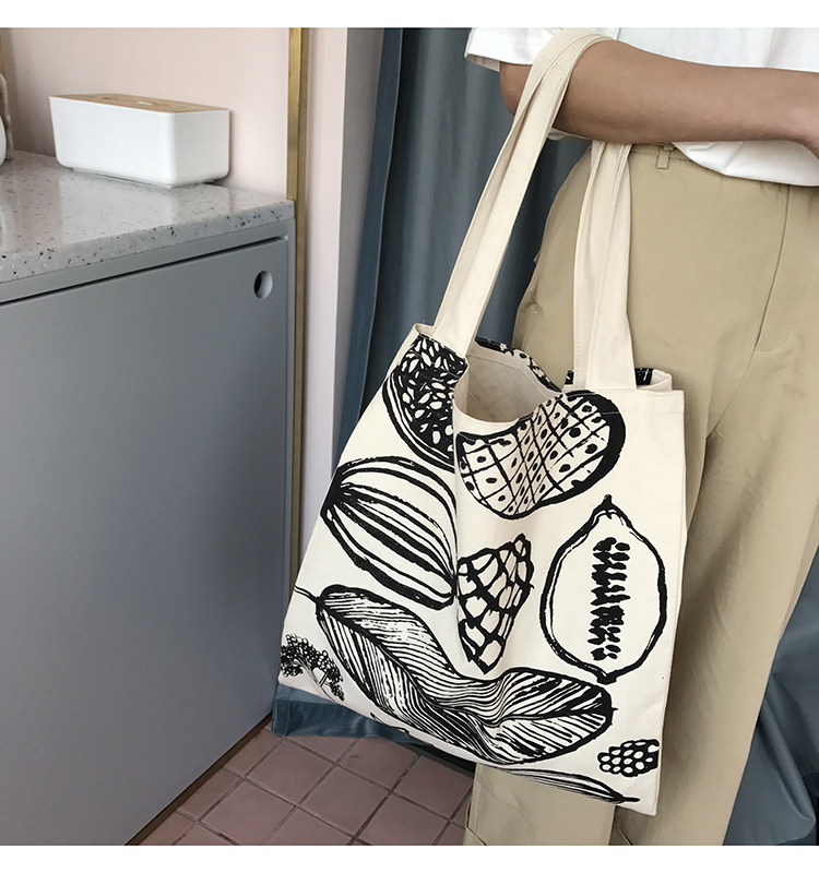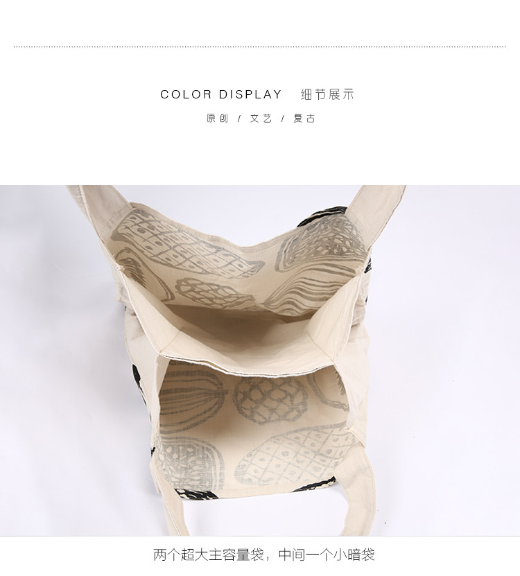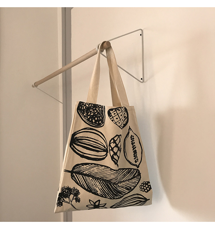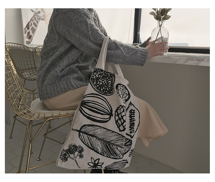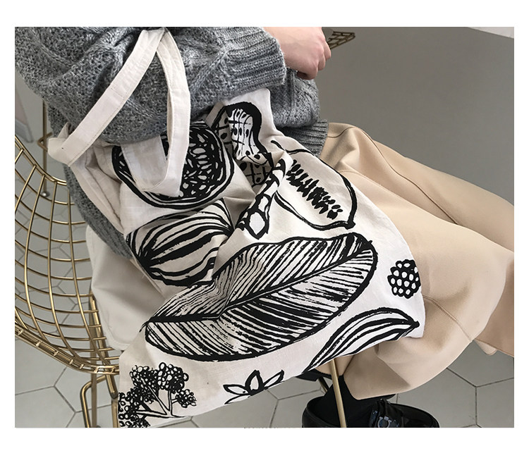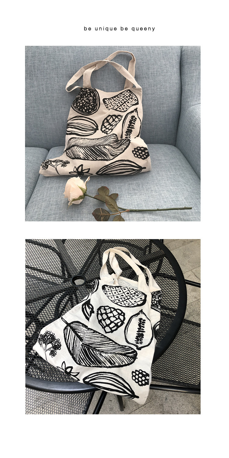唐糖包袋 文藝簡約大樹葉印花棉麻布包 韓國chic超大容量單肩包價格行情