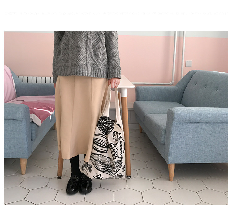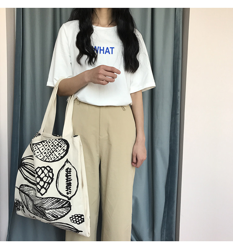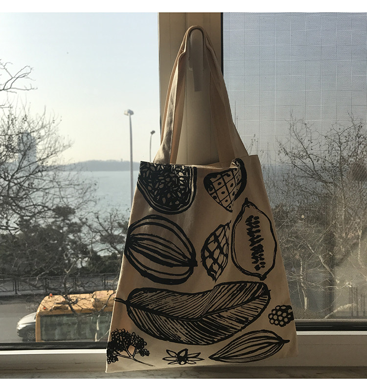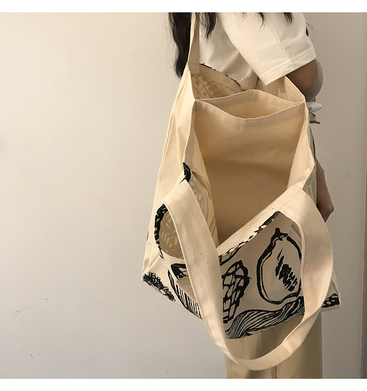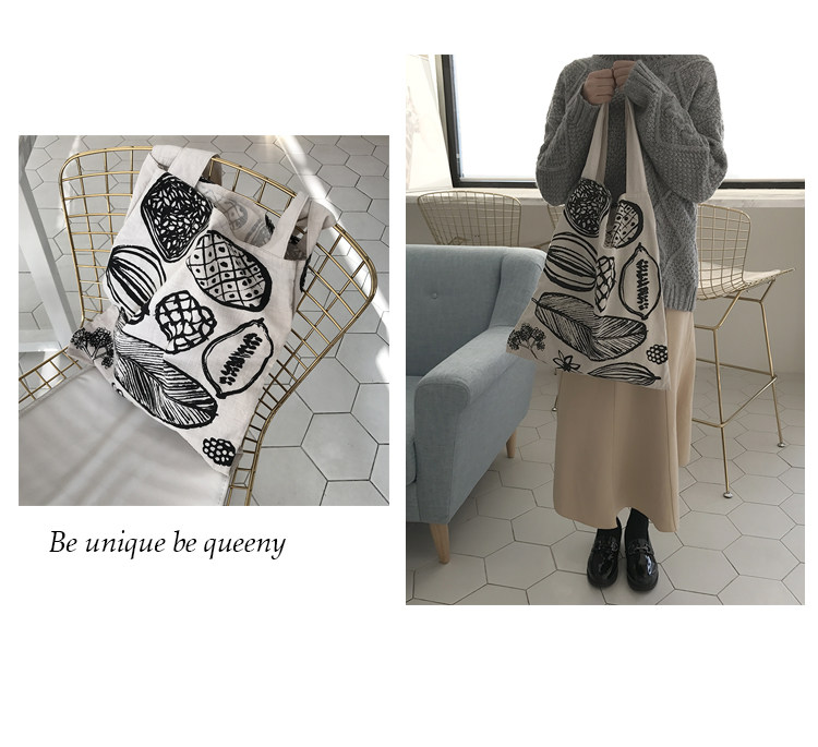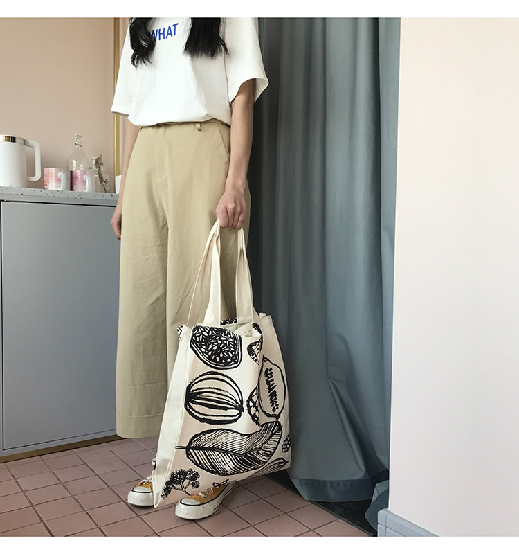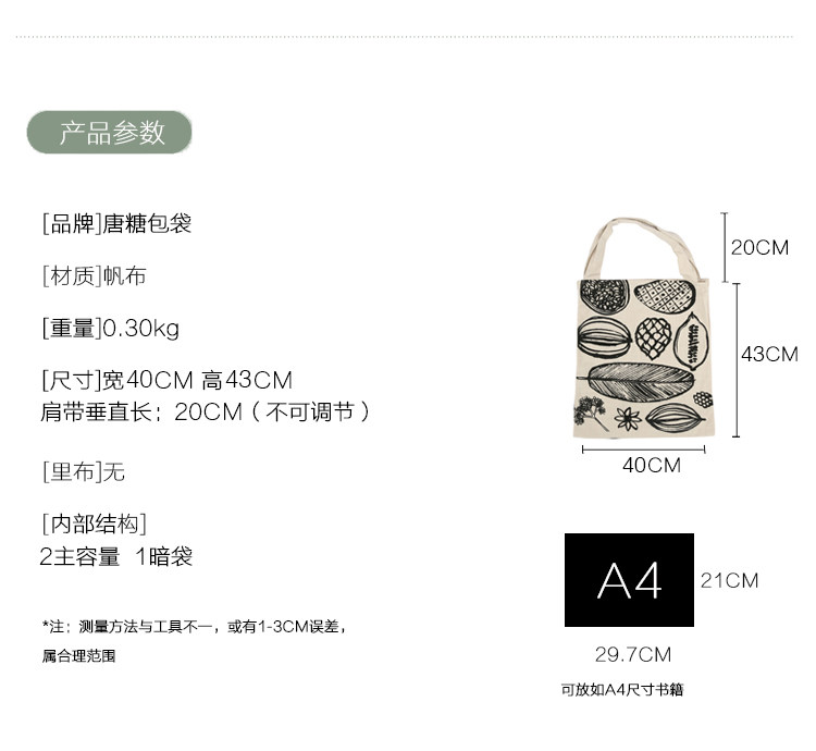 唐糖包袋 文藝簡約大樹葉印花棉麻布包 韓國chic超大容量單肩包價格行情