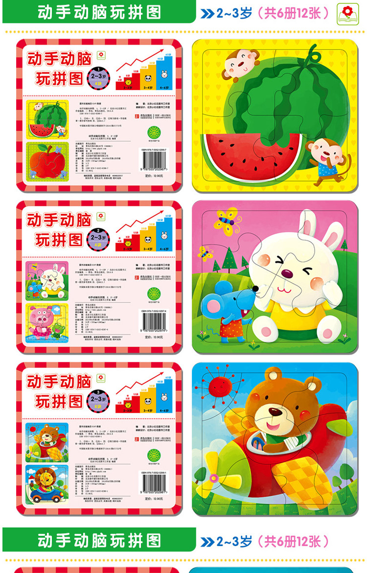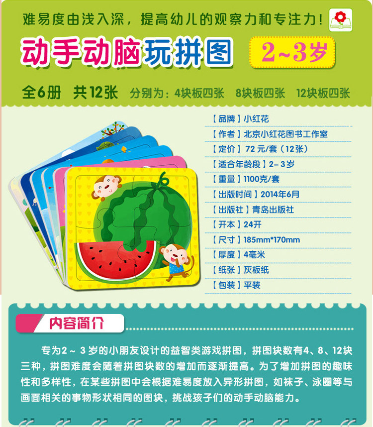 全套12張 小紅花23歲動手動腦玩拼圖兒童拼圖拼板4/8/12片觀察力價格行情