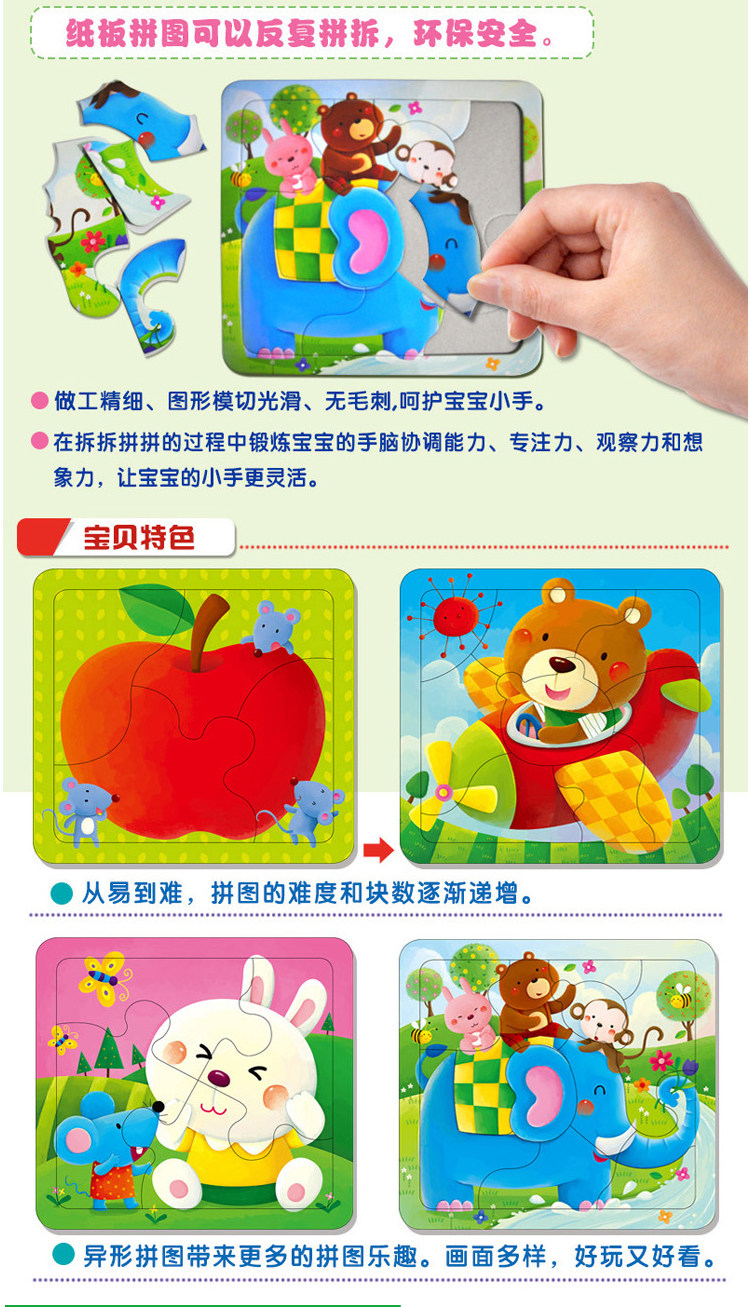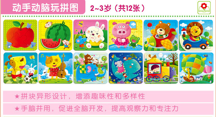 全套12張 小紅花23歲動手動腦玩拼圖兒童拼圖拼板4/8/12片觀察力推廣熱賣行情