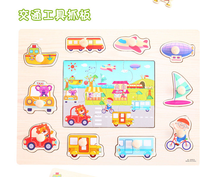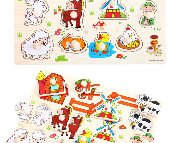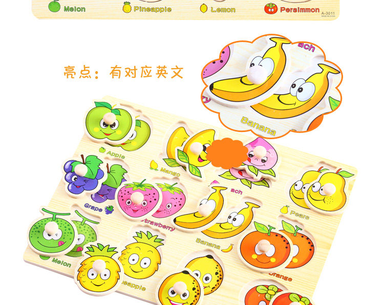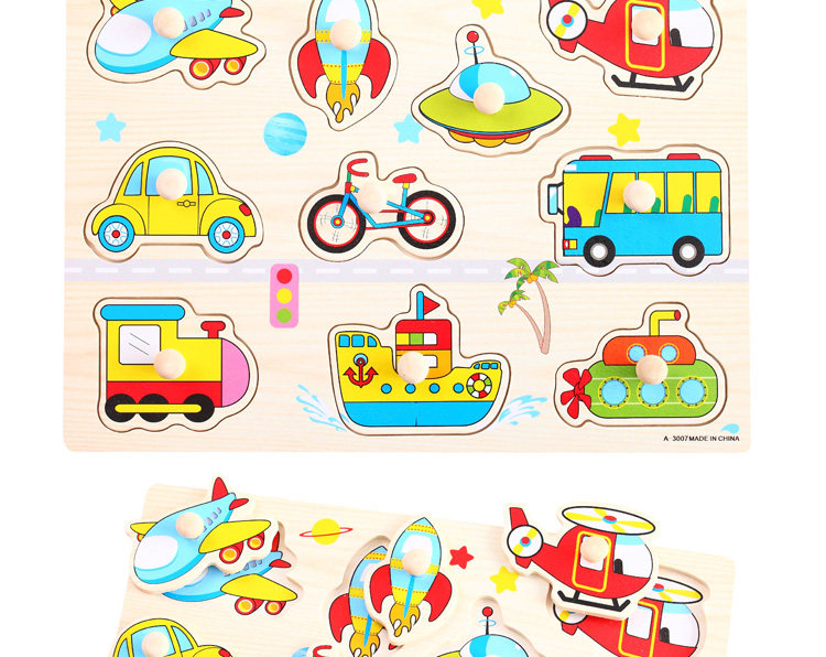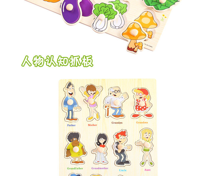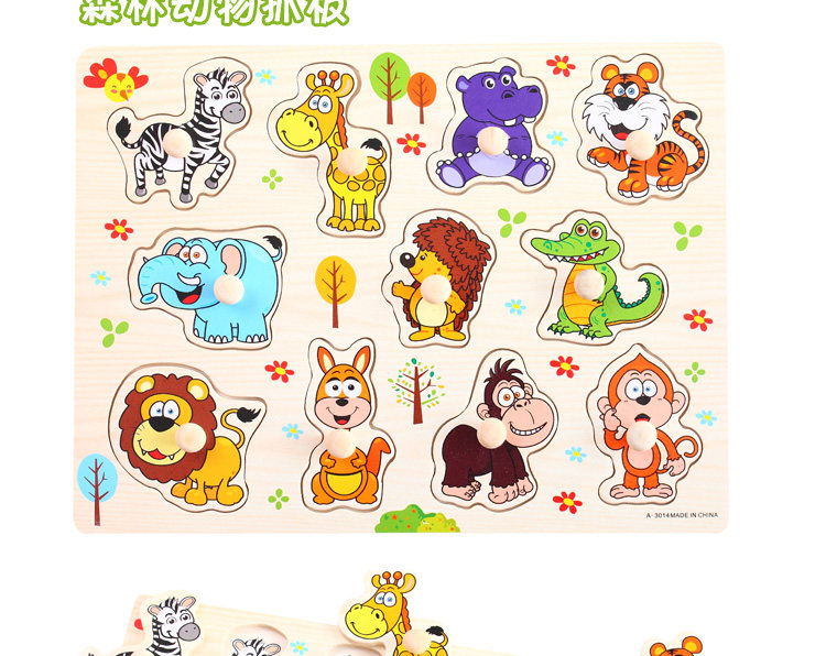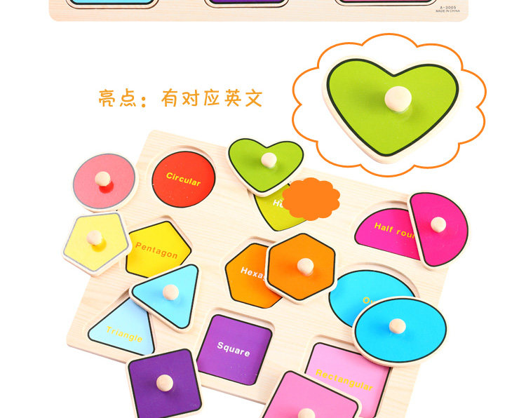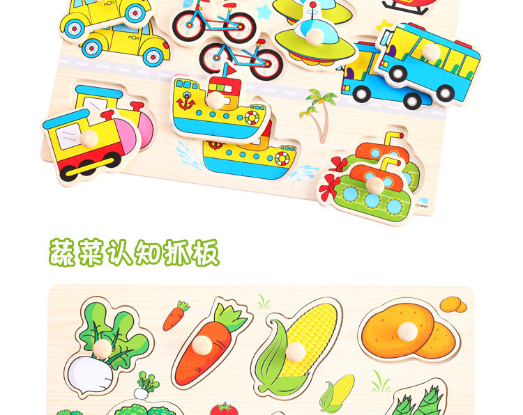 摒棄紙制拼圖不可拆裝的缺點,更可重復拆拼,達到環(huán)保又可多次學習的效果,是孩子愛不釋手的。色彩鮮艷、每個可活動的拼塊上面都有一個木質(zhì)的捏柄,寶寶在拿的時候很方便。