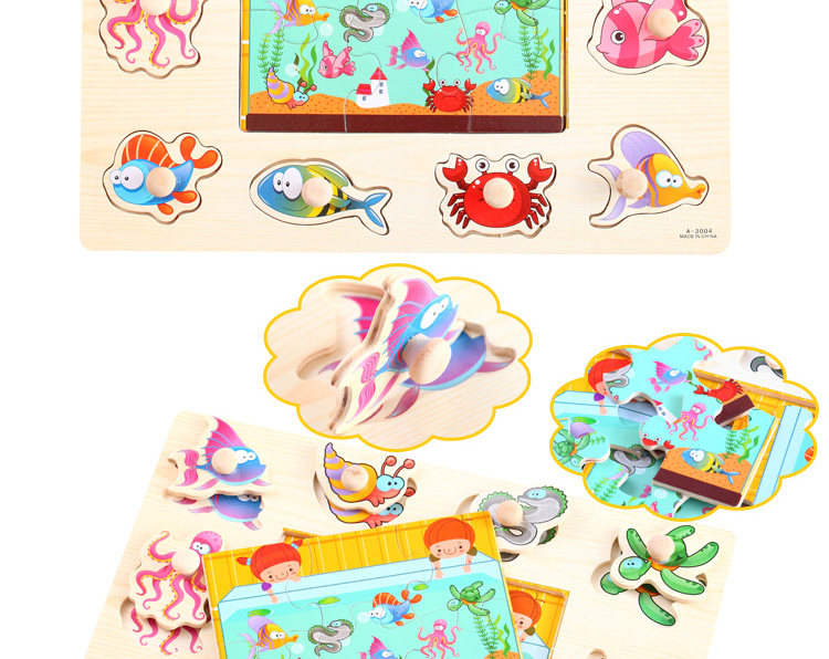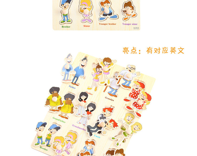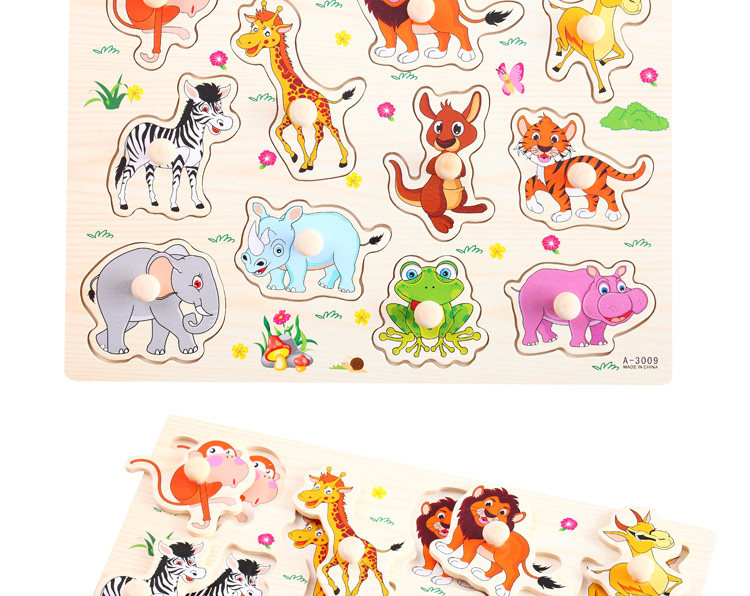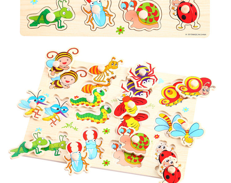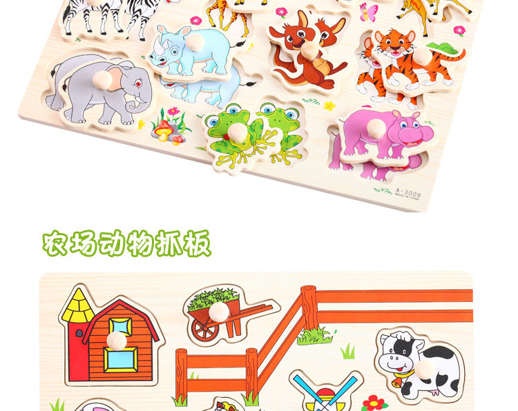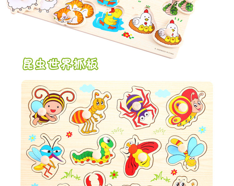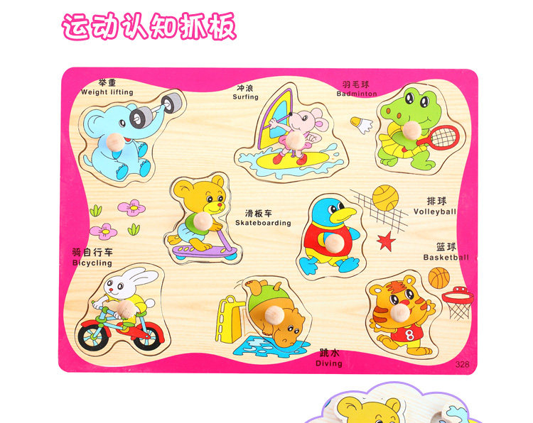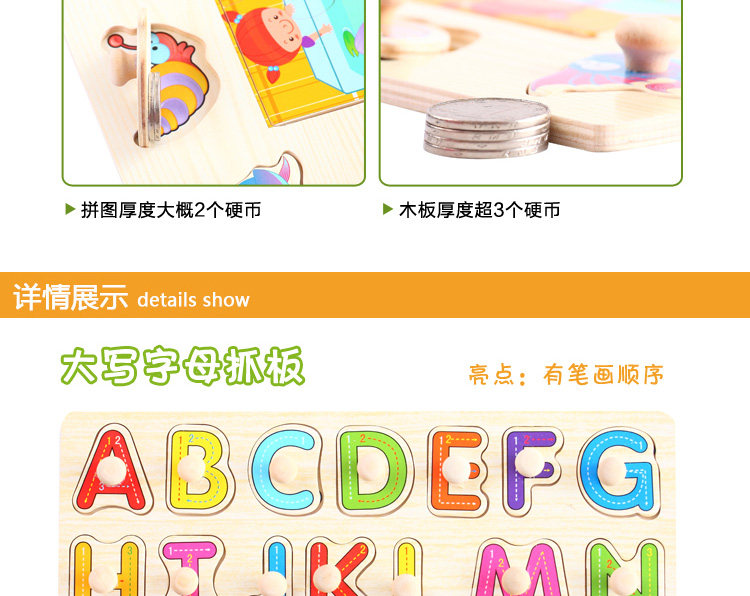 摒棄紙制拼圖不可拆裝的缺點,更可重復拆拼,達到環(huán)保又可多次學習的效果,是孩子愛不釋手的。色彩鮮艷、每個可活動的拼塊上面都有一個木質(zhì)的捏柄,寶寶在拿的時候很方便。