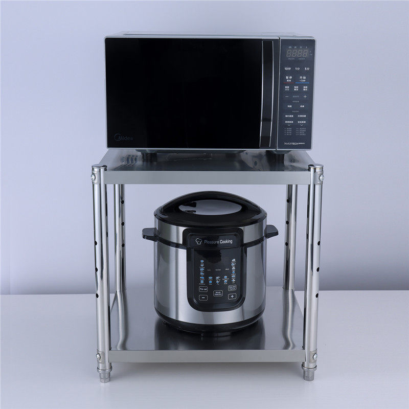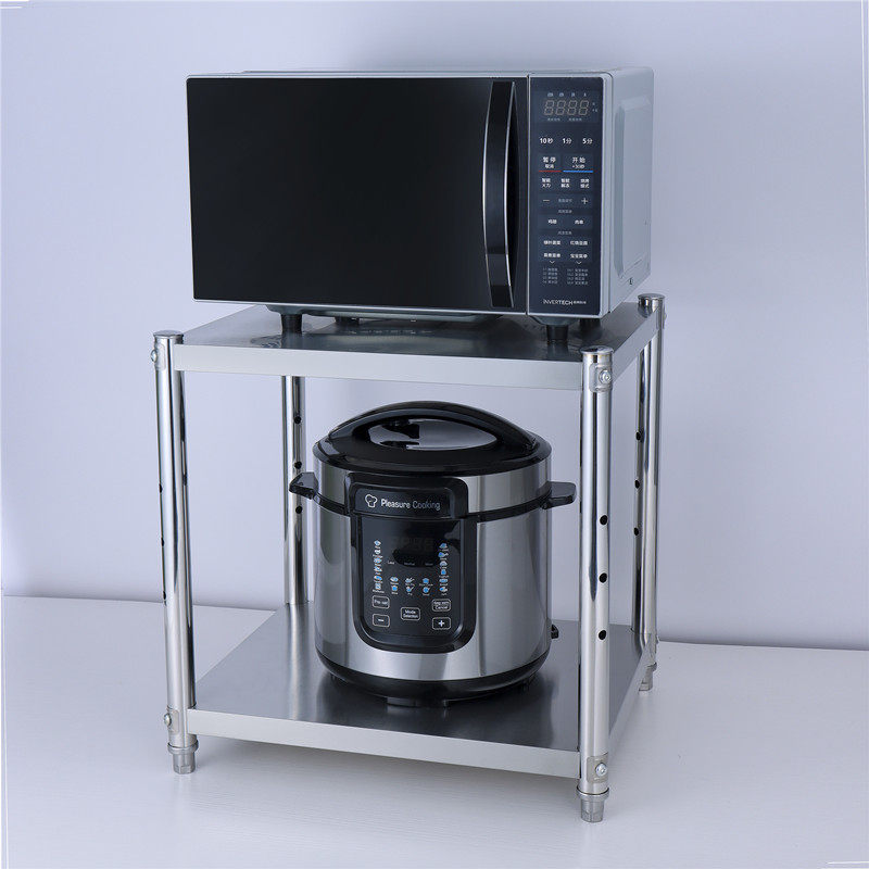 不銹鋼小廚房置物架雙層正方形落地家用微波爐收納架鍋電飯煲架子推廣熱賣行情