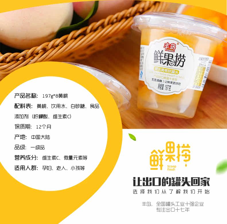 豐島鮮果撈黃桃水果罐頭 休閑零食 出口 糖水黃桃罐頭197g*8杯.推廣熱賣行情
