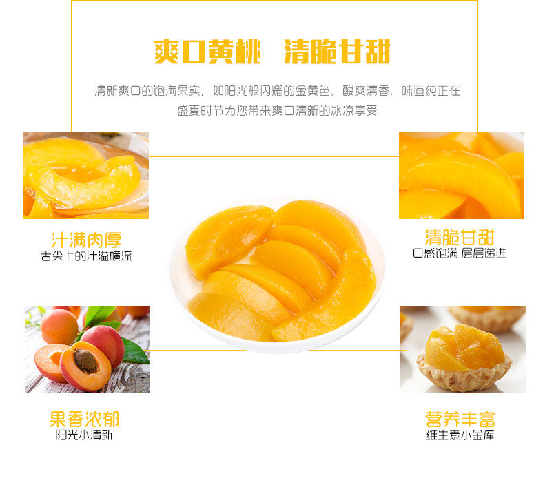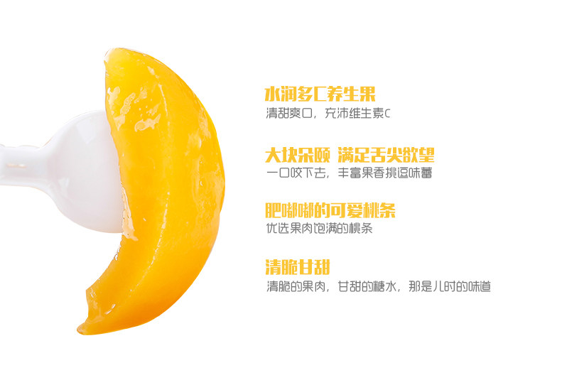 - 配料表:黃桃、水、白砂糖、食品添加劑(檸檬酸、維生素C)