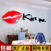 溫馨墻貼 創(chuàng)意3d亞克力墻貼臥室Kiss Me嘴唇水晶浪漫床頭立體墻貼