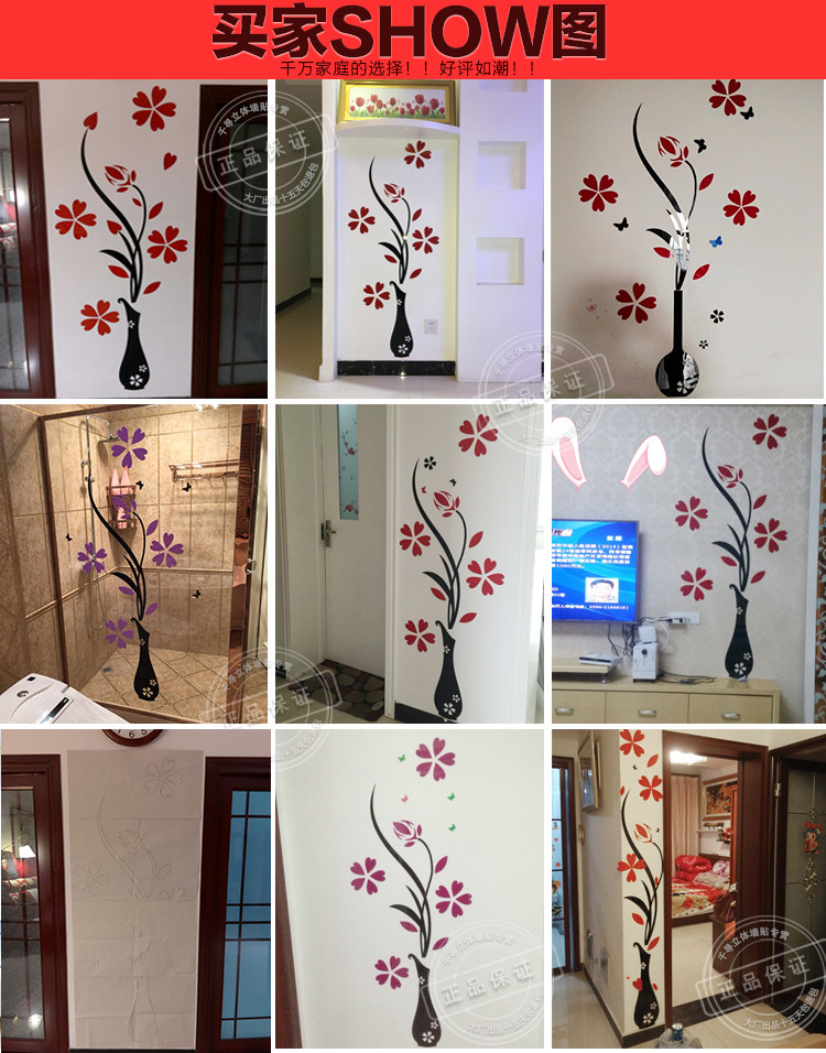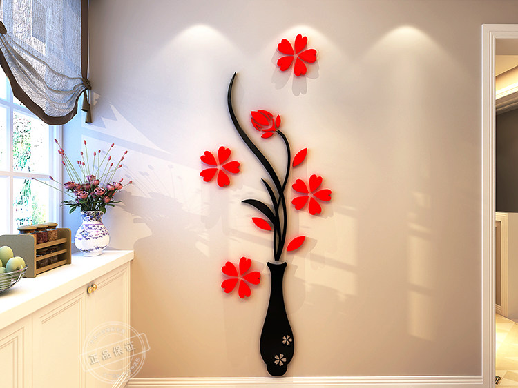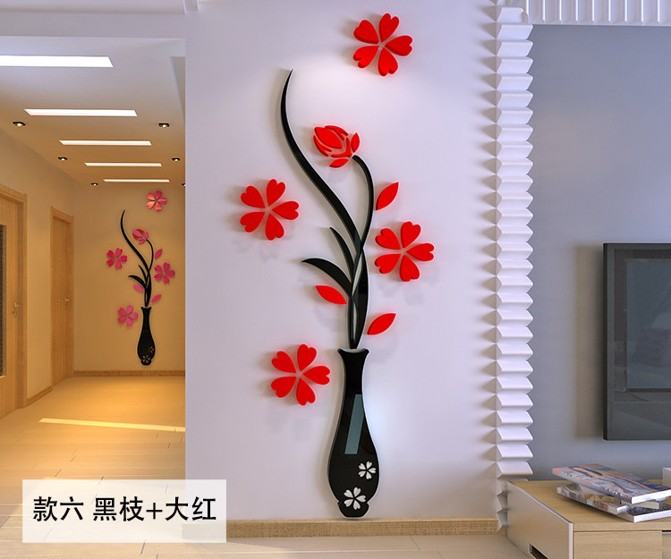 花瓶梅水晶亞克力3d立體墻貼客廳玄關(guān)臥室電視背景墻家居飾品墻貼推廣熱賣行情
