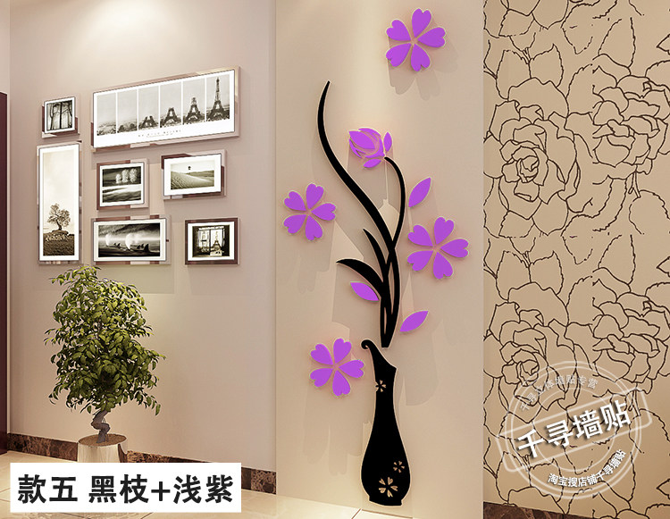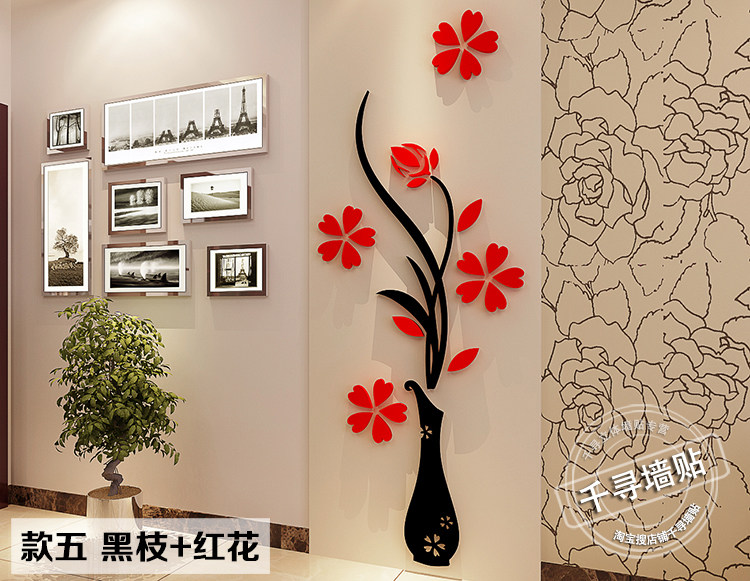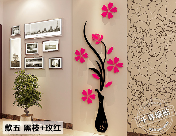 花瓶梅水晶亞克力3d立體墻貼客廳玄關(guān)臥室電視背景墻家居飾品墻貼價格行情