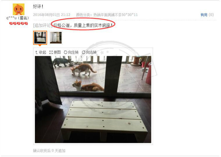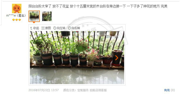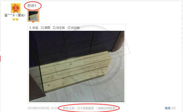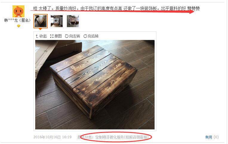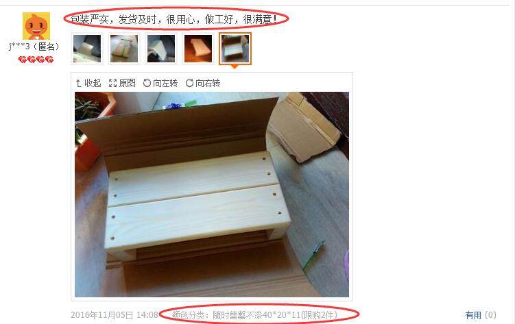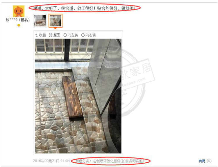 | 【關(guān)于:定制服務(wù)】由買家提供相關(guān)尺寸(例:長、寬、高)和要求(例:噴環(huán)保漆、碳化+噴環(huán)保漆、踏板木條、踏板滿鋪)給客服人員,客服人員根據(jù)尺寸要求報價給買家,買家根據(jù)報價結(jié)果進行選擇數(shù)量拍付(例:定制共需(咨詢特價),需拍1件任意尺寸,切記備注好相關(guān)尺寸要求,然后告知客服改價,客服改完價格后,買家確認付款),這樣定制款初步交易即完成,下面就是賣家根據(jù)定制尺寸要求加工發(fā)貨,買家收貨確認等。備注是在買家留言里面進行備注,請親一定要備注清楚尺寸及要求事項,越詳細越好。 |