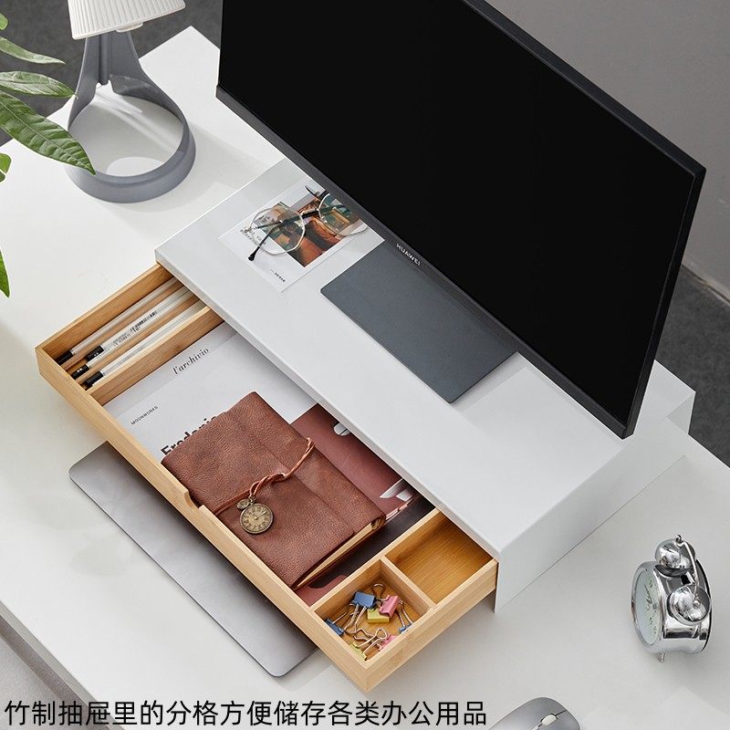 抽屜式電腦顯示器增高架桌面筆記本底座支架辦公桌收納整理置物架價(jià)格行情