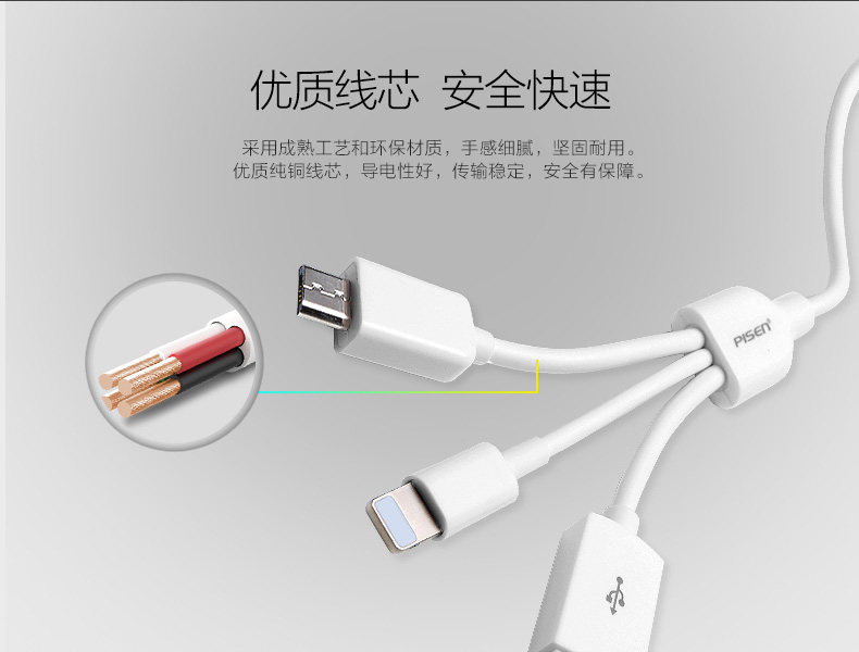 品勝數據線三合一蘋果手機通用一拖三typec安卓多功能充電線車載多頭二合一多用iPhone6三頭1米旗艦店正品短.價格行情