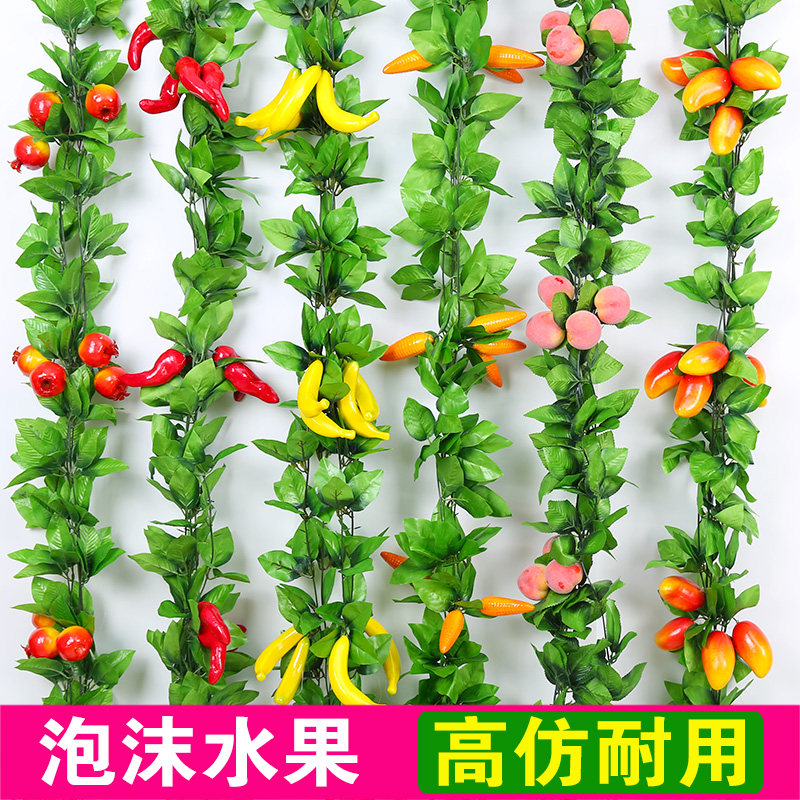 仿真水果假花藤條植物壁掛葡萄葉吊頂藤蔓樹葉塑料水管道遮擋裝飾價格行情