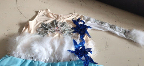 煙雨鵲橋舞蹈演出服第六界舞蹈大賽舞臺(tái)表演服羽毛裙價(jià)格行情