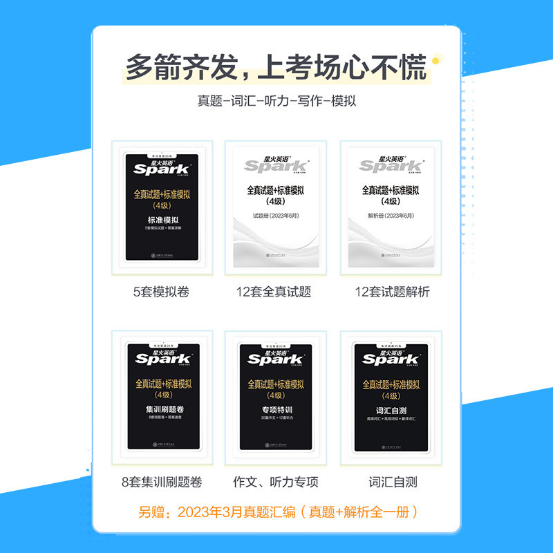 備考2023年12月含6月真題試卷星火四級考試英語真題試卷真題試卷資料歷年真題大學(xué)英語cet4級模擬詞匯聽力閱讀口語翻譯寫作專項書推廣熱賣行情