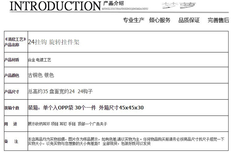 16鉤旋轉(zhuǎn)架X底座(高30厘米,40厘米) 優(yōu)勢(shì):16鉤,普通的一般只有12鉤 尺寸;底座直徑14CM ,旋轉(zhuǎn)架直徑21CM