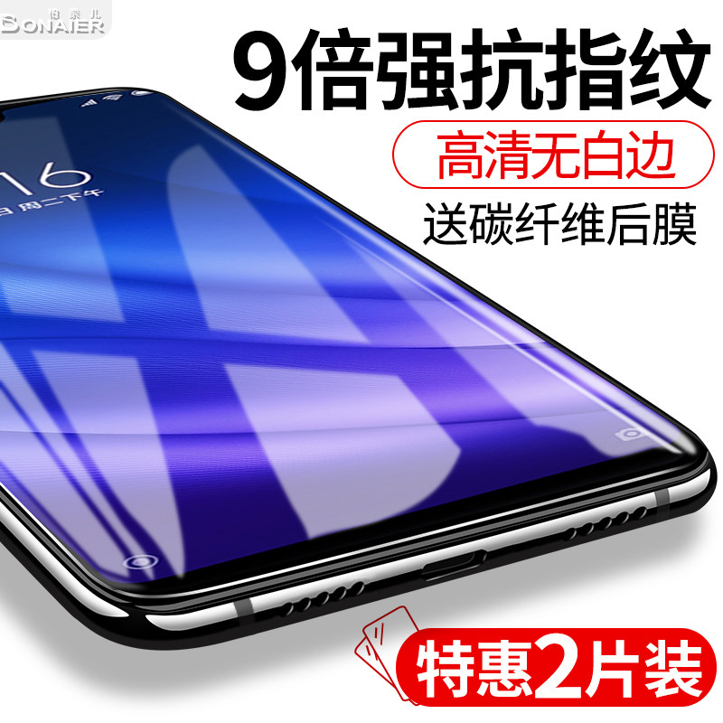 柏奈兒適用于小米8青春版鋼化膜小米8se手機膜mi8屏幕指紋探索版八全屏覆蓋曲面抗藍光高清剛化貼膜無白邊