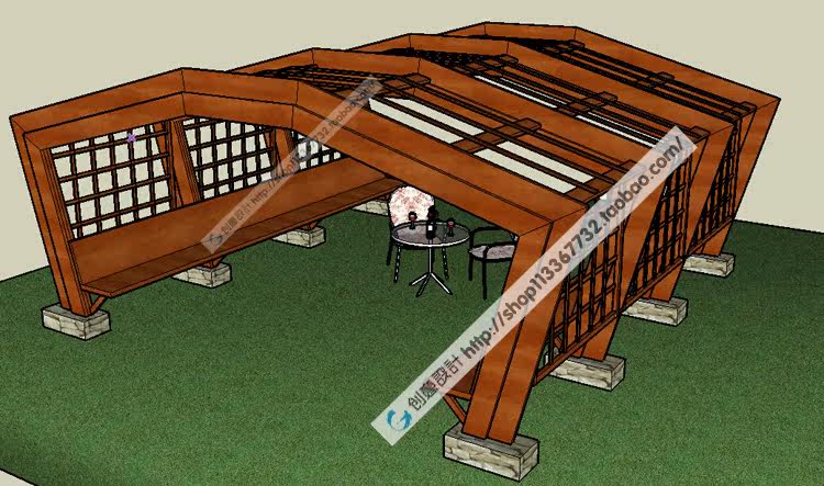SketchUp草圖大師模型庫花架廊架建筑園林景觀小品su單體模型組件推廣熱賣行情