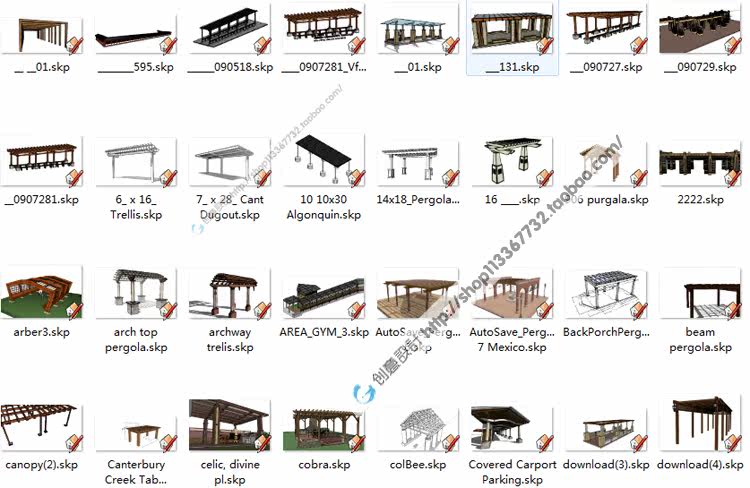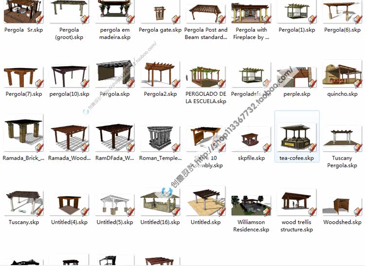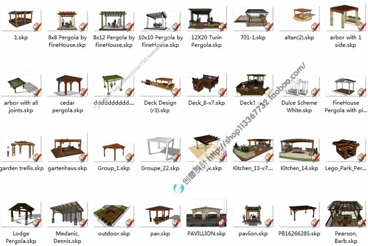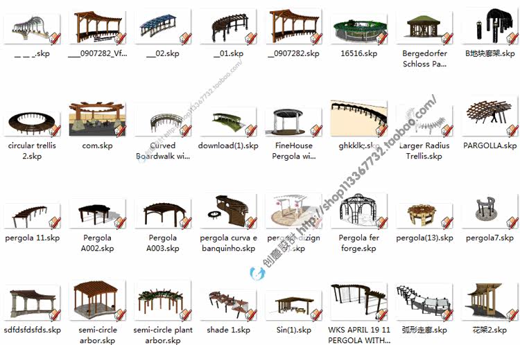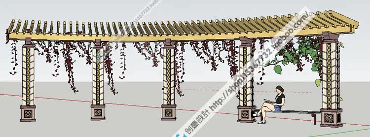 SketchUp草圖大師模型庫花架廊架建筑園林景觀小品su單體模型組件價(jià)格行情