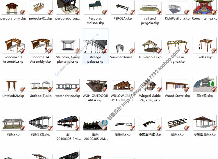 名稱:SketchUp草圖大師模型庫花架 廊架 構(gòu)筑 園林景觀小品su模型組件