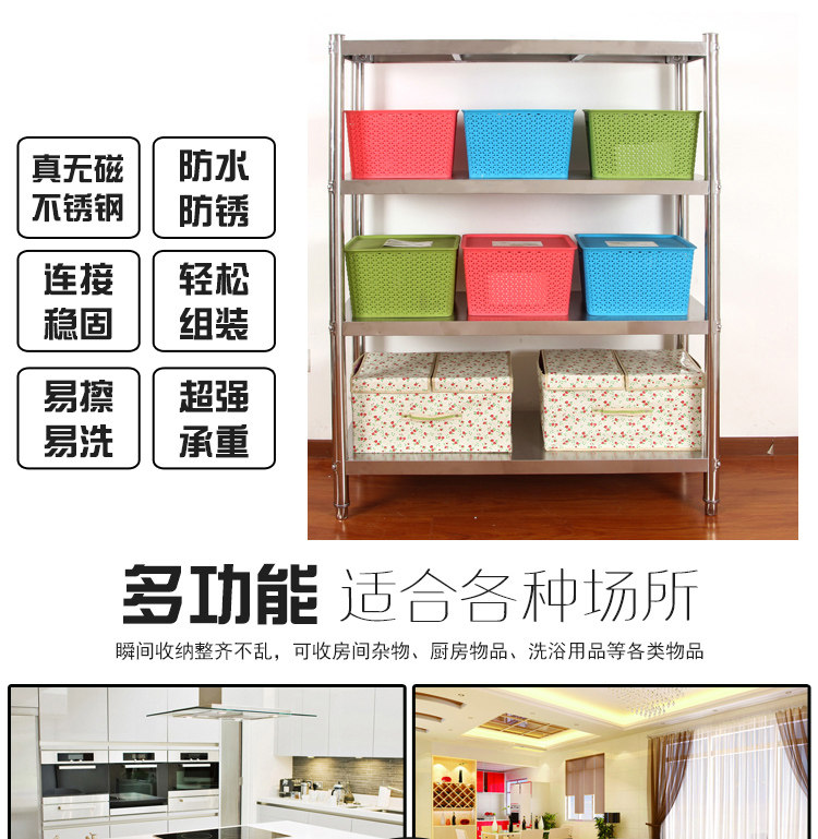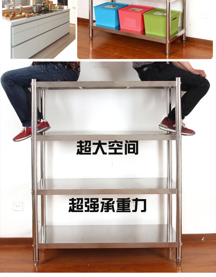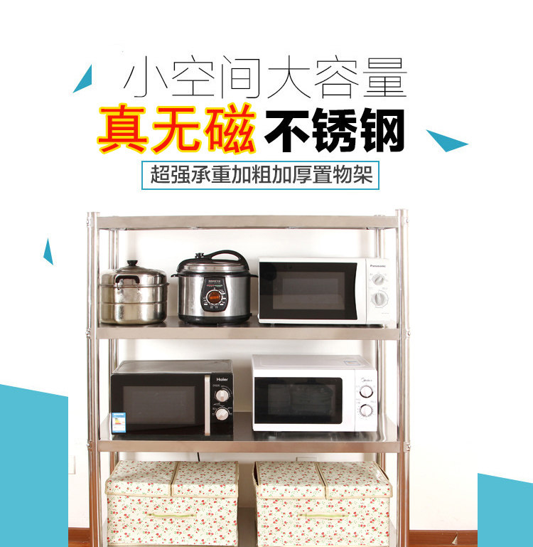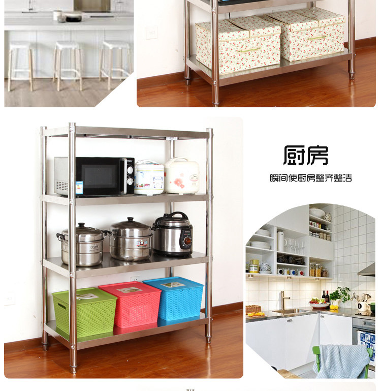 不銹鋼貨架廚房置物架4層加厚落地架子廚房酒店廚具微波爐收納架推廣熱賣行情