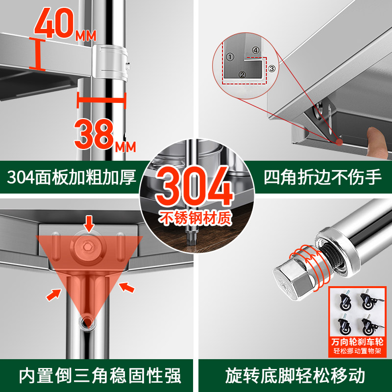 304廚房不銹鋼帶圍欄置物架落地式多層家用收納微波爐菜架子加厚