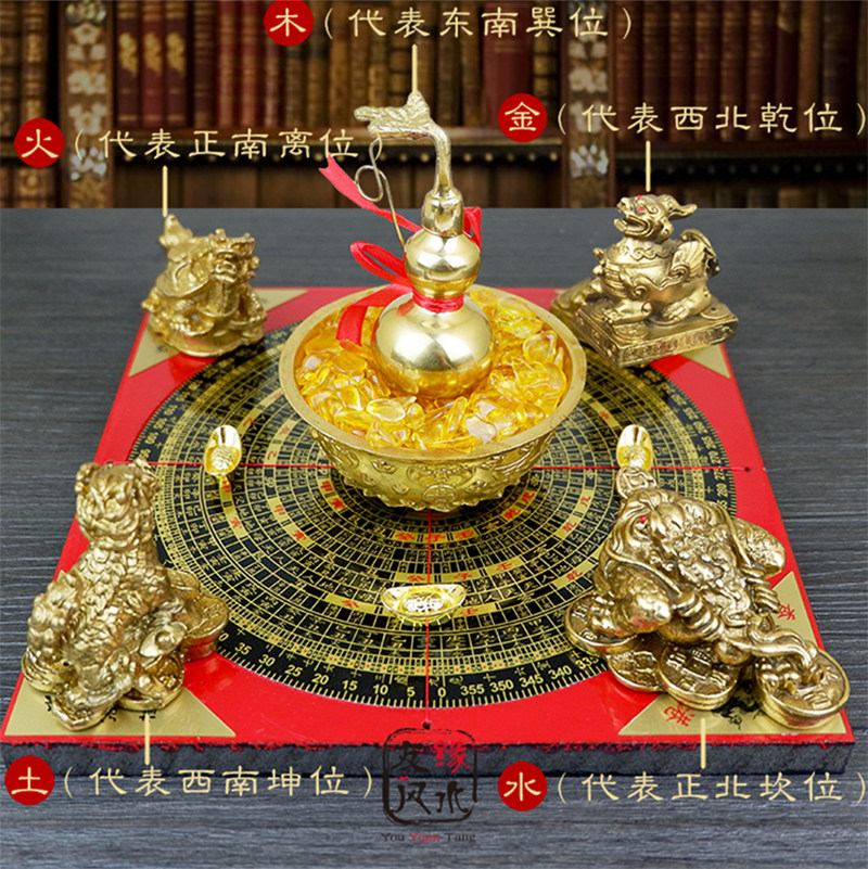 純銅聚財(cái)陣葫蘆龍龜金蟾貔貅羅盤(pán)麒麟風(fēng)水聚寶盆招財(cái)家居店鋪擺件