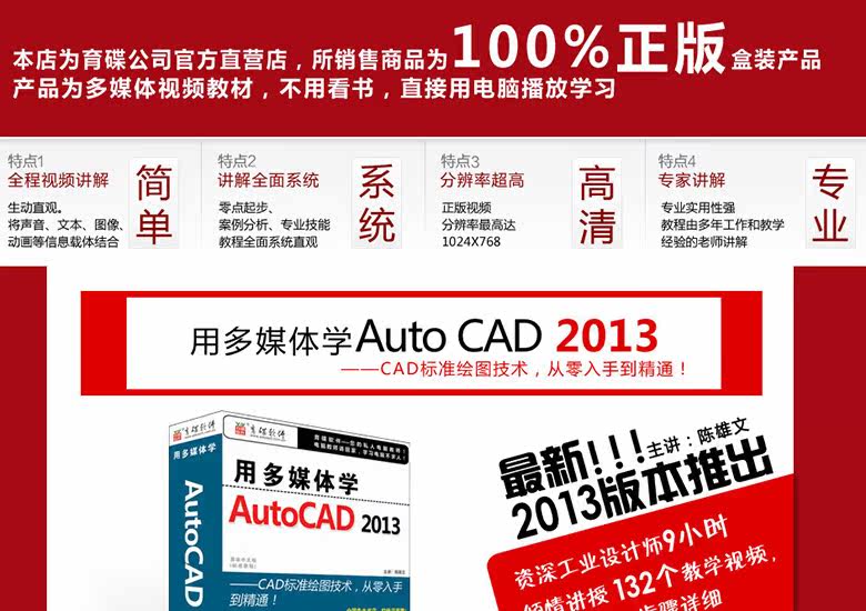正版CAD教程AutoCAD2014/2013/2010 多媒體教學(xué)自學(xué)軟件視頻教程.