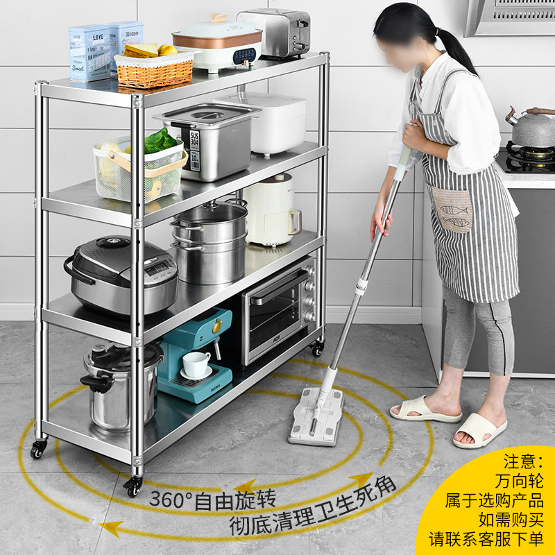 304不銹鋼廚房置物架落地四層烤箱架收納貨架多層陽(yáng)臺(tái)微波爐鍋架