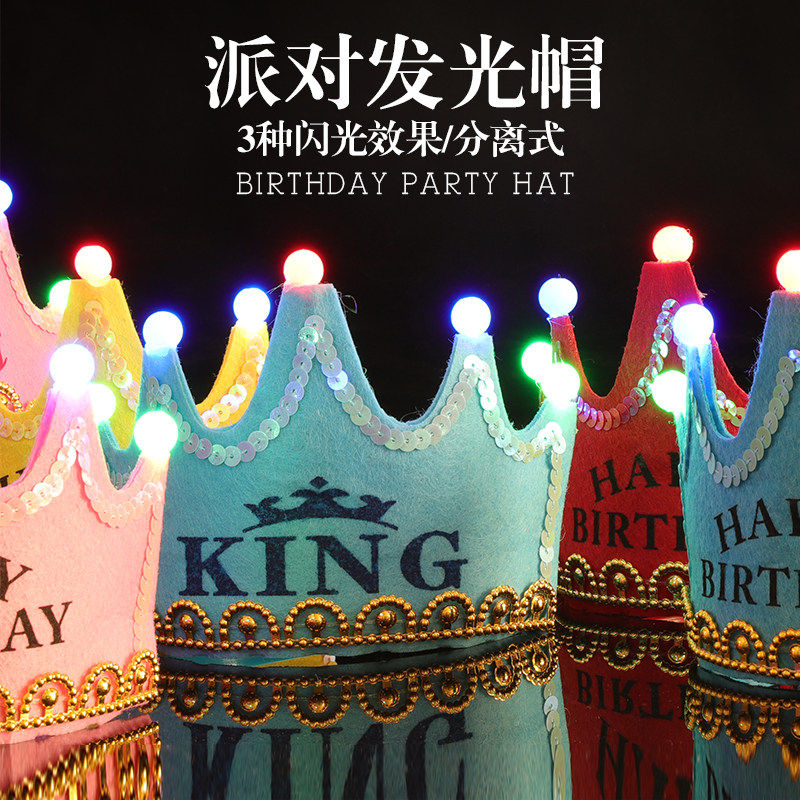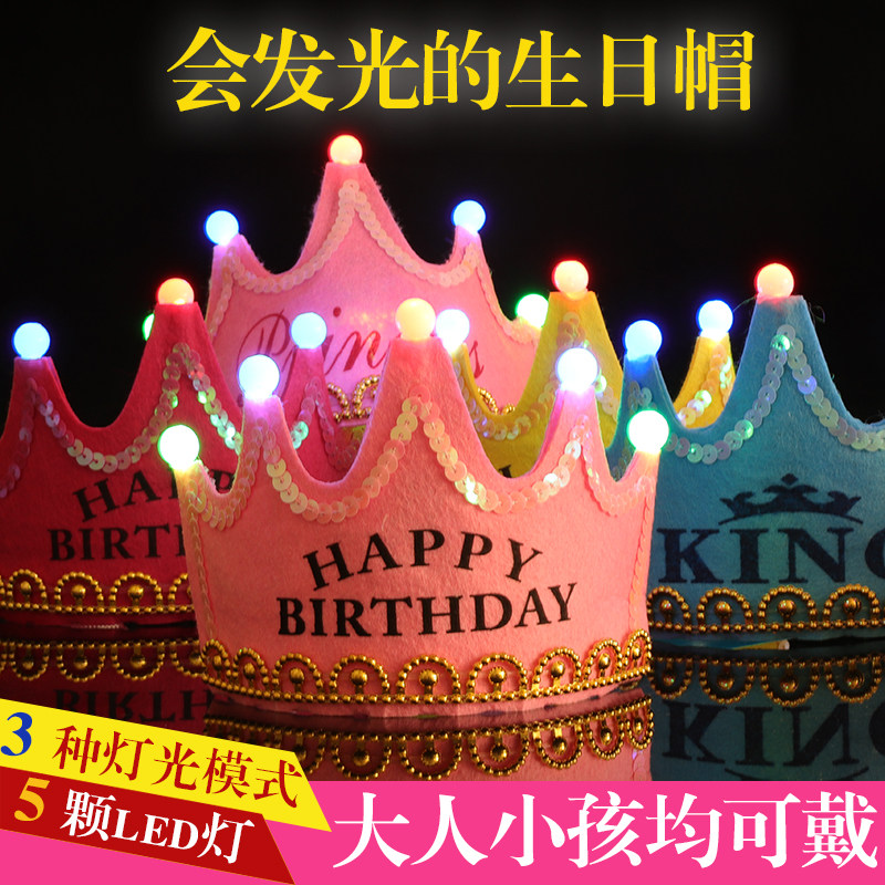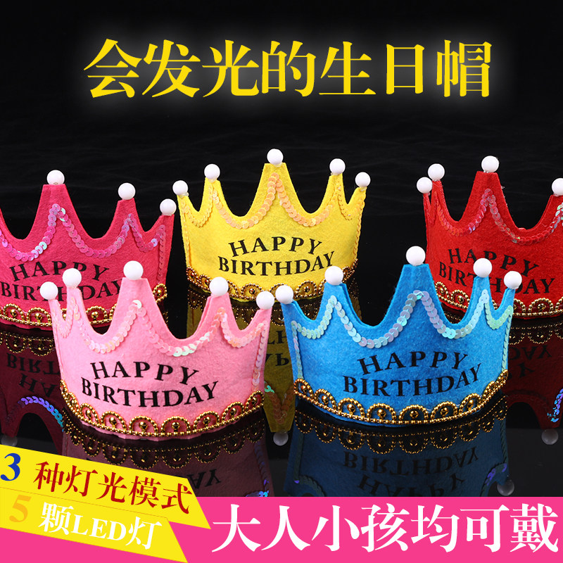 兒童生日快樂蛋糕帽子發(fā)光生日帽成人派對裝飾紅生日帽