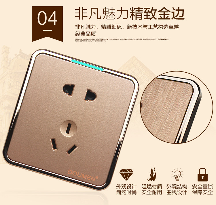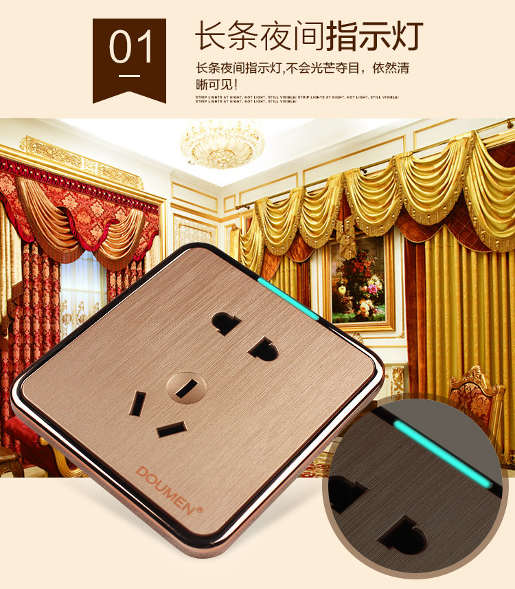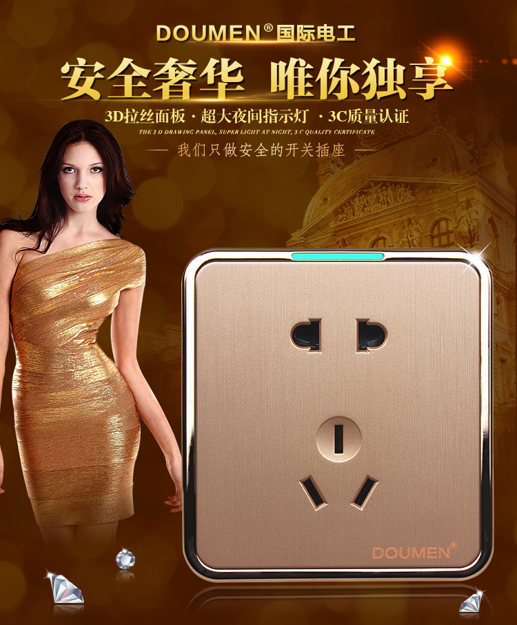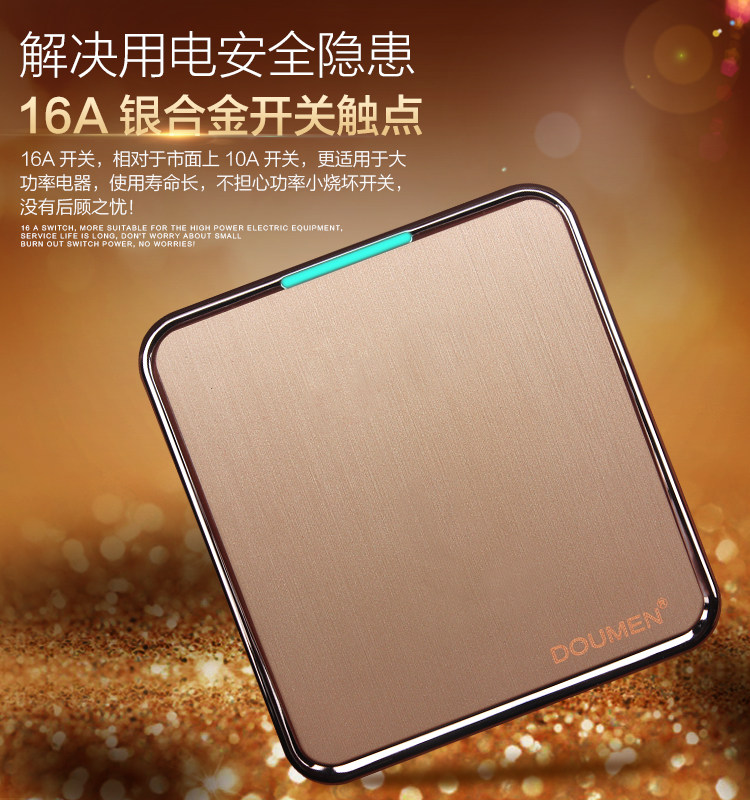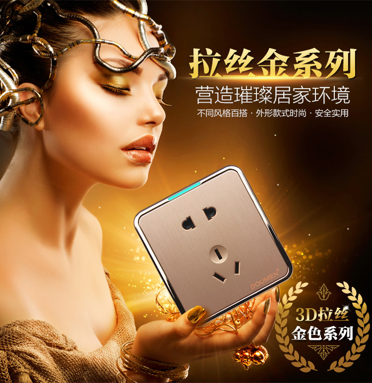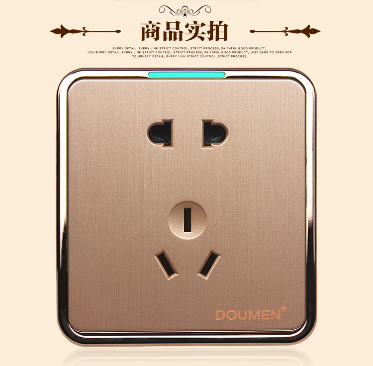 國際電工香檳金色拉絲開關插座套餐二三插座面板86型五孔電源插座推廣熱賣行情