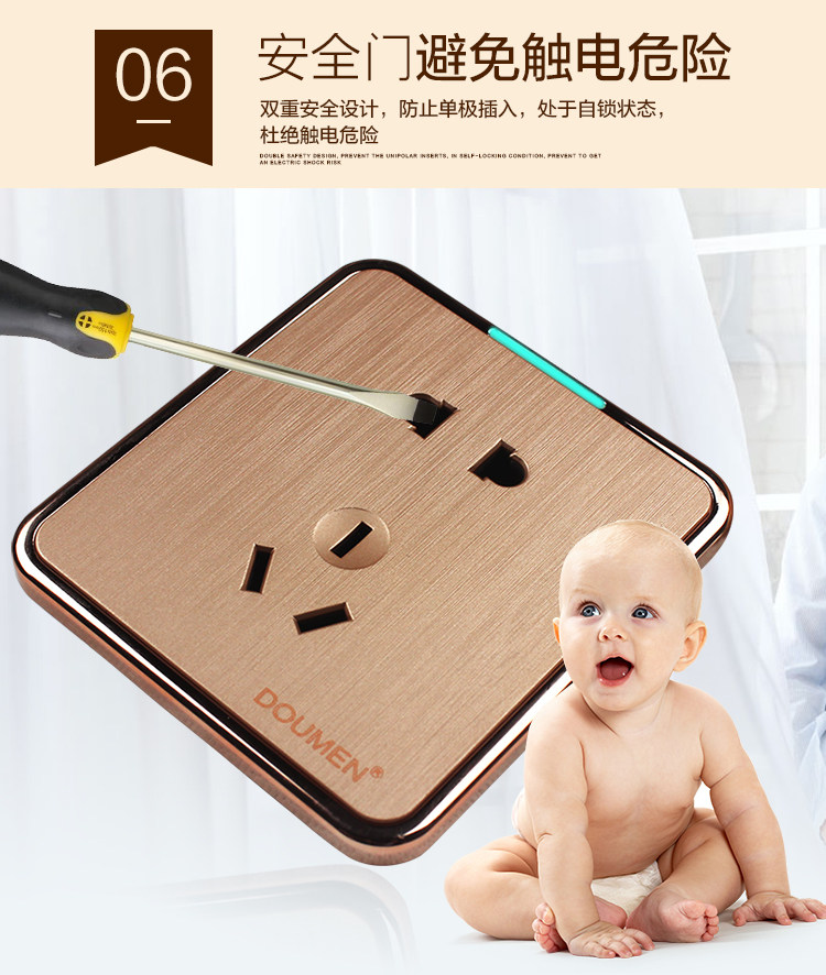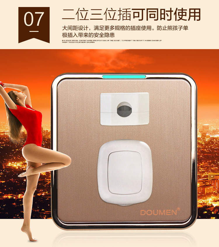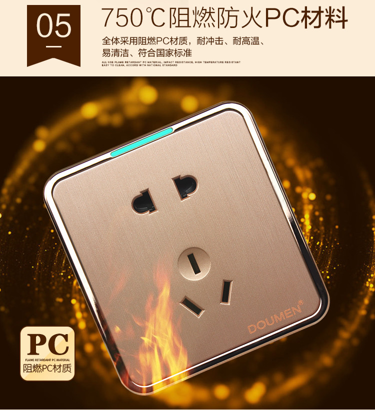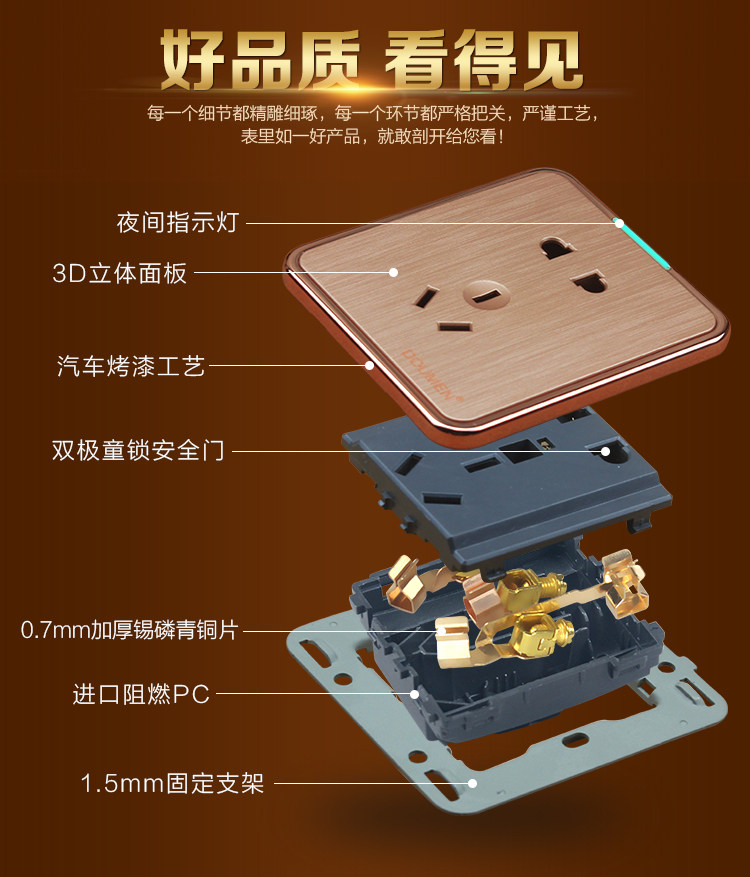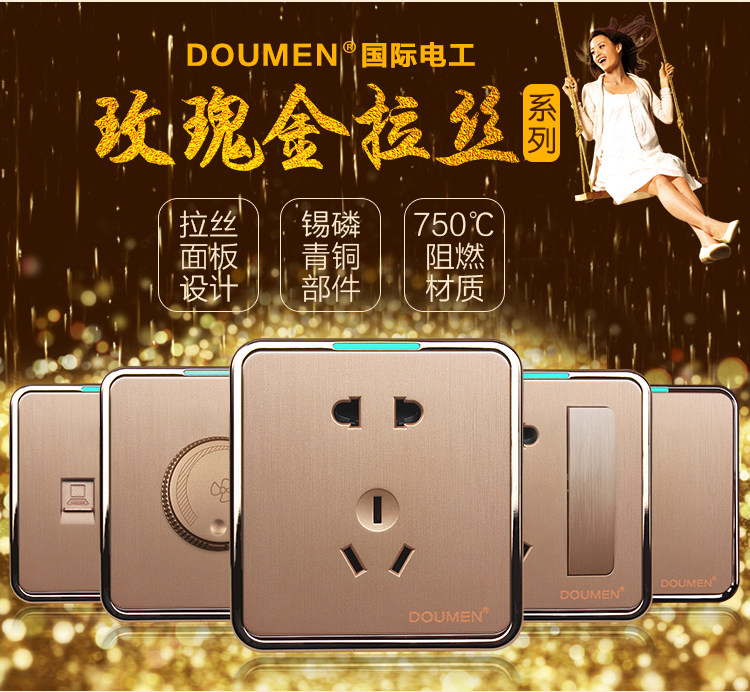 國際電工香檳金色拉絲開關插座套餐二三插座面板86型五孔電源插座推廣熱賣行情