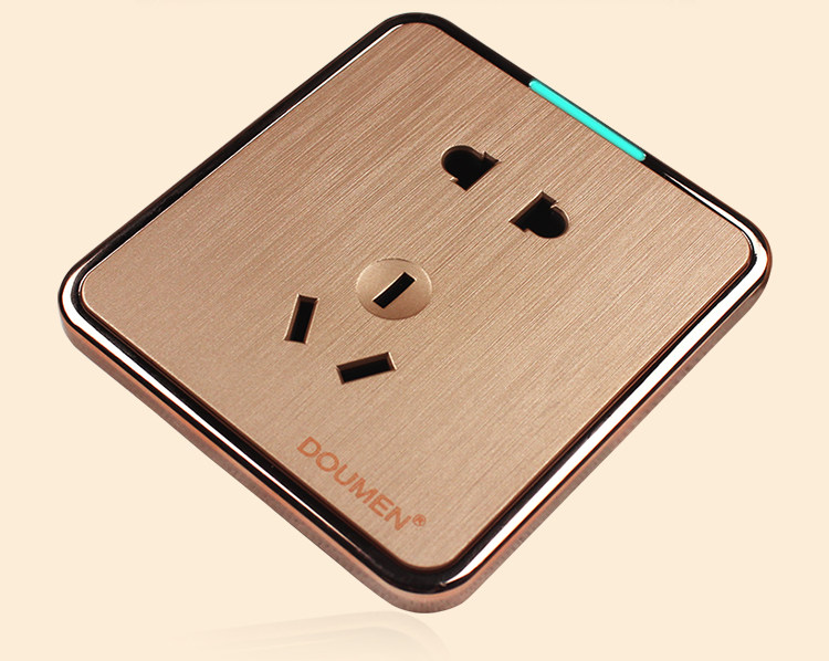 國際電工香檳金色拉絲開關插座套餐二三插座面板86型五孔電源插座