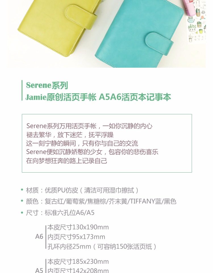 Serene沉靜氣質(zhì)手帳本a5a6 六孔活頁本筆記本文具 記事本女手賬本推廣熱賣行情