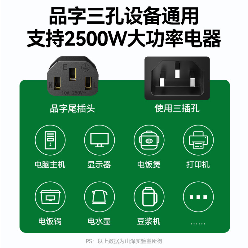 山澤電腦電飯煲電源線三孔3芯臺(tái)式主機(jī)顯示器屏打印電飯鍋帶插頭