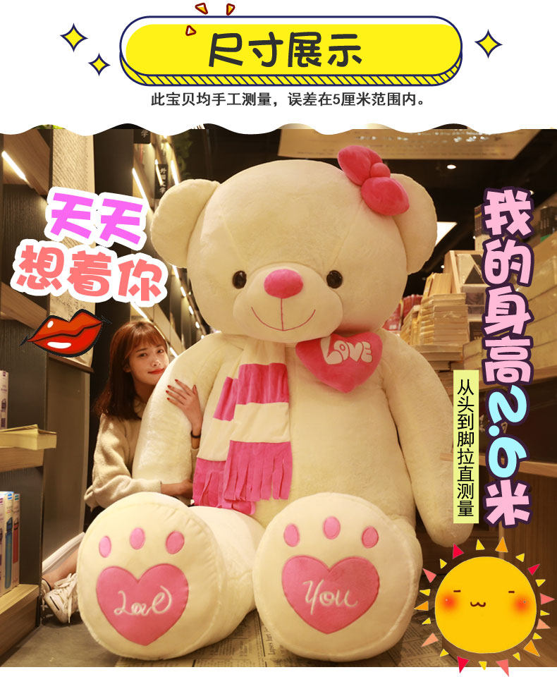 泰迪熊抱抱熊貓公仔大熊2米布娃娃毛絨玩具熊女孩玩偶送女友禮物.推廣熱賣行情