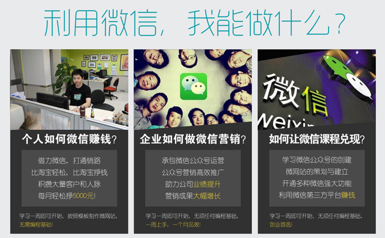 課程分三大部分:1、玩轉微商系統(tǒng)實戰(zhàn)課程 2、公眾號運營實戰(zhàn)課程 3、第三方平臺開發(fā)實戰(zhàn)課程