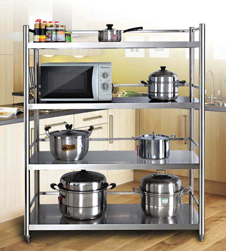 不銹鋼廚房置物架落地3多層放鍋架子4微波爐收納層架置物架家用貨價(jià)格行情