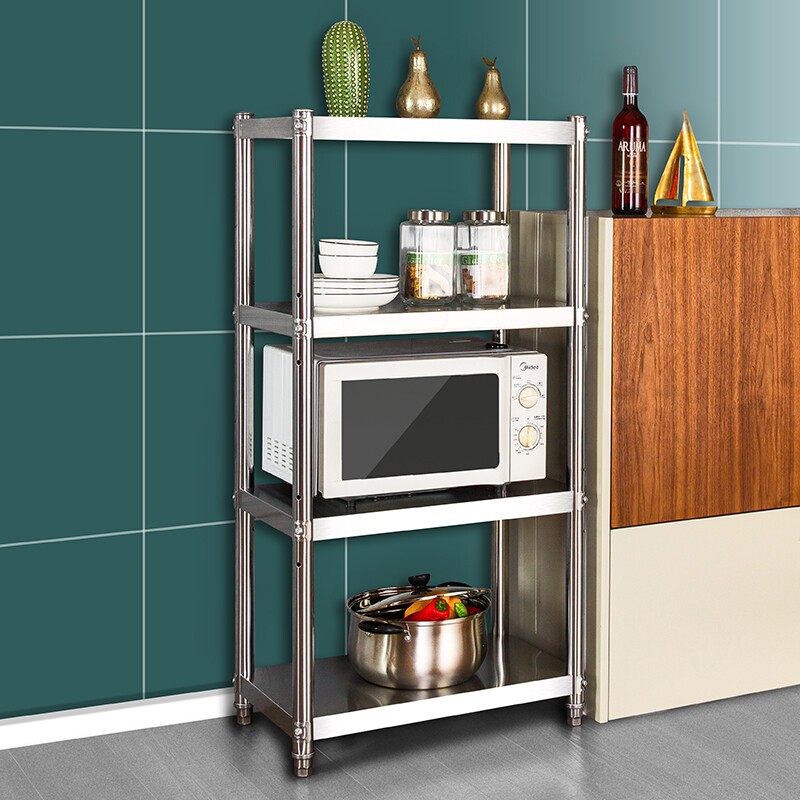 廚房置物架落地式多層可調(diào)節(jié)不銹鋼收納四層4調(diào)料碗架多功能架子5價格行情