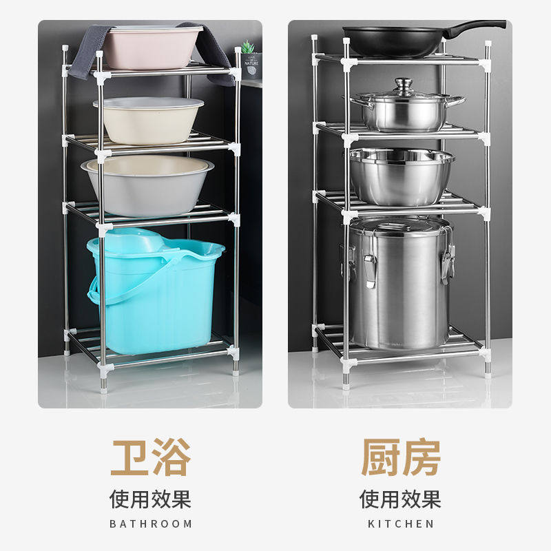 不銹鋼臉盆架子廚房置物架衛(wèi)生間洗手間浴室置物架落地多層整理架價格行情