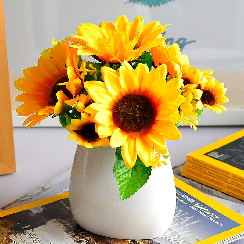 向日葵北歐風(fēng)格花瓶絹花仿真花套裝假花餐桌花裝飾品室內(nèi)擺件花藝推廣熱賣行情
