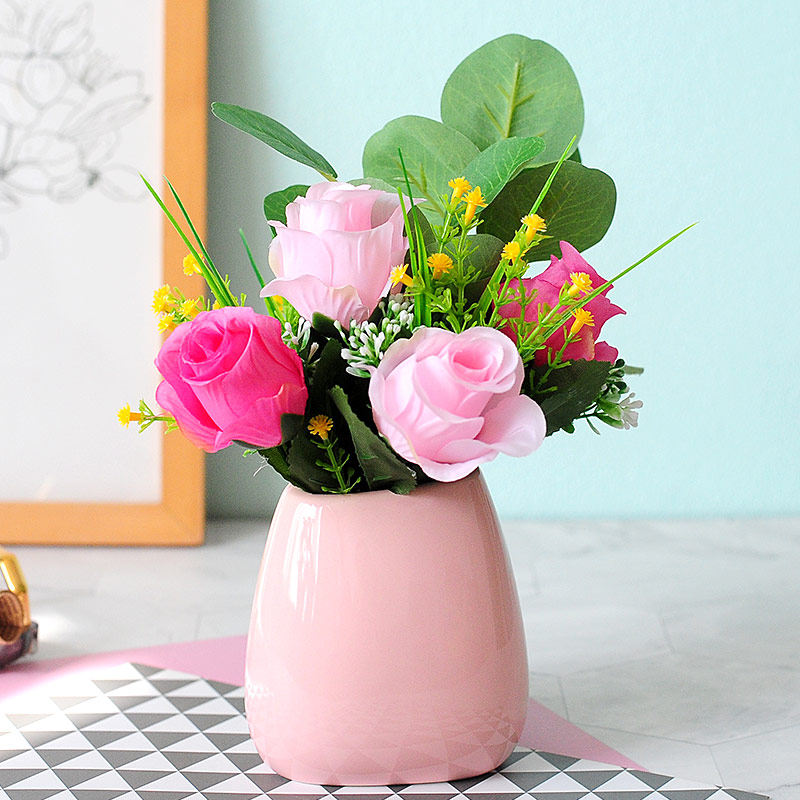 向日葵北歐風(fēng)格花瓶絹花仿真花套裝假花餐桌花裝飾品室內(nèi)擺件花藝