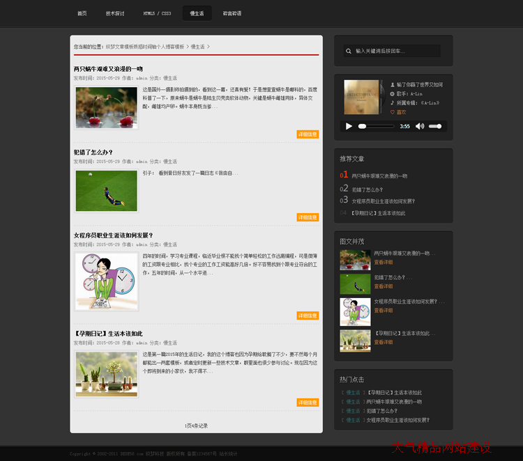 織夢CMS 黑色文章資訊 個人博客網(wǎng)站源碼 PHP通用質(zhì)感時間軸模板