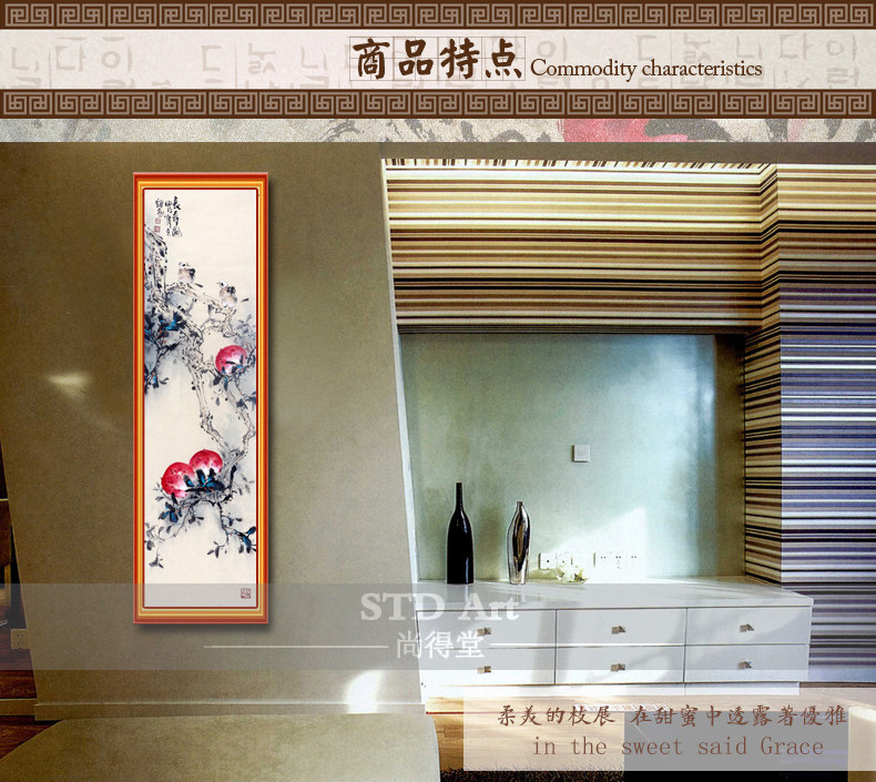 名家手繪國畫花鳥畫石榴花客廳玄關(guān)餐廳寫意四尺國畫花鳥畫水墨畫