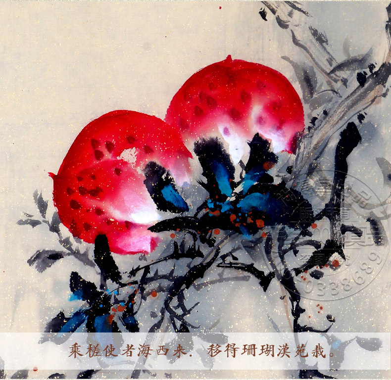 名家手繪國畫花鳥畫石榴花客廳玄關(guān)餐廳寫意四尺國畫花鳥畫水墨畫推廣熱賣行情