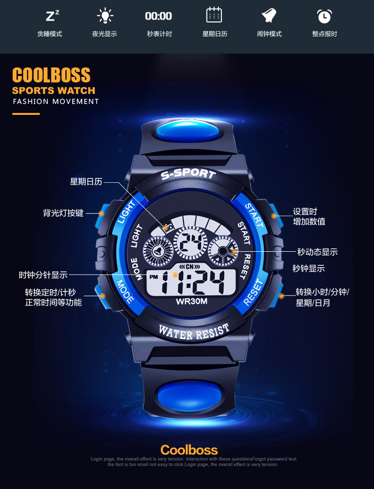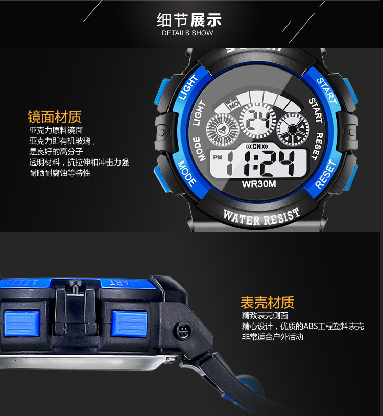 奧瑞森 LED防水夜光電子表青少年多功能戶外男表運(yùn)動(dòng)兒童學(xué)生手表.