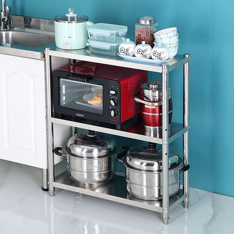 廠家不銹鋼廚房置物架落地多層微波爐烤箱放鍋置物架子貨架三層收價(jià)格行情
