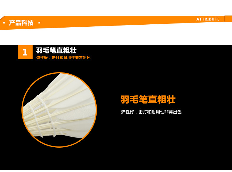 全鵝毛一級,三拼軟木球托,有著美妙的飛行弧線和激動的球感