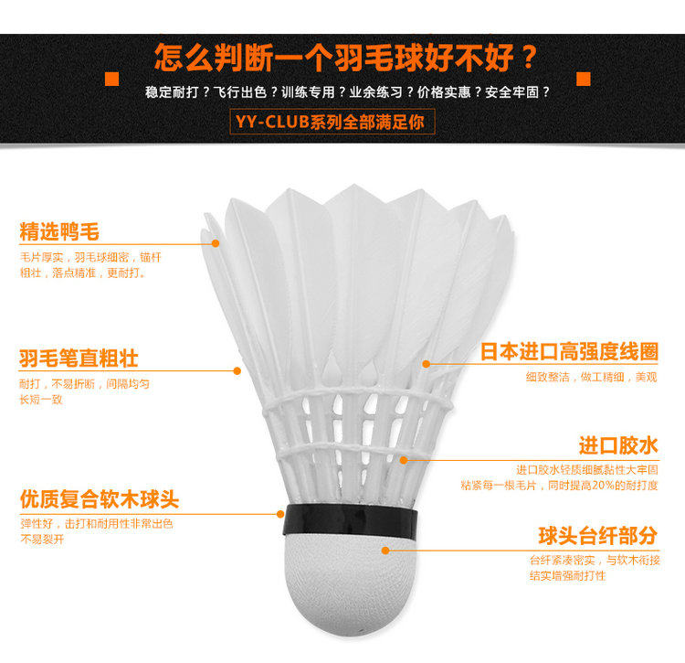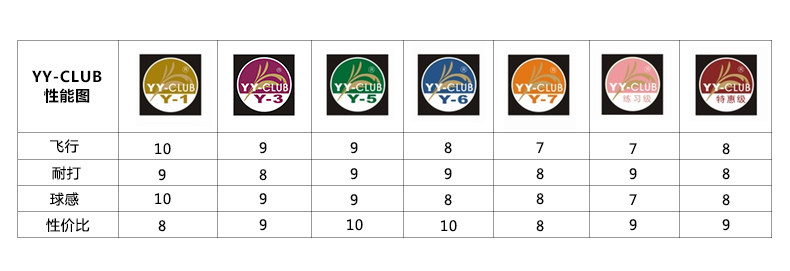 冬天,需要出品耐打一些的球,目前40-50之間價位口碑非常好的是亞獅龍6和勝利特惠,兩者都是用鶿鴣中方混和豚鴨毛來做的。YY-CLUB的紅Y/特惠,采用精選鶿鴣中番和Y7一樣的超級耐打度,飛行穩(wěn)定性和球感比Y7有一定的提高,所以和Y6,并稱為YY-CLUB的性價比名氣好。